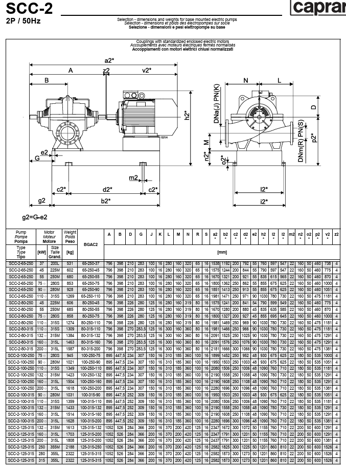 Pompa Caprari SCC2 reprezintă o gamă modernă de pompe orizontale cu carcasă axială (split case), concepută pentru eficiență ridicată, robustețe și mentenanță ușoară în aplicații civile și industriale, cum ar fi alimentarea cu apă, irigațiile și desecările.